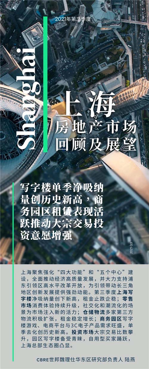 CBRE華東區(qū)顧問及交易服務(wù)|辦公樓部負(fù)責(zé)人張?jiān)奖硎荆?021年寫字樓需求持續(xù)升溫的表現(xiàn)顯示了上海作為國家對外開放的窗口城市良好的經(jīng)濟(jì)基本面。在優(yōu)質(zhì)新增供應(yīng)放量和戰(zhàn)略新興資本加持的背景下,各類企業(yè)在今年加速戰(zhàn)略性發(fā)展與房地產(chǎn)布局,如科技和互聯(lián)網(wǎng)企業(yè)持續(xù)擴(kuò)張,而頭部金融、醫(yī)藥企業(yè)布局也明顯加速,進(jìn)一步助力寫字樓去化。此外,浦東‘引領(lǐng)區(qū)’新政落地已逐步為區(qū)域市場吸引更多外資金融、專業(yè)服務(wù)等行業(yè)需求,第三季度浦東各板塊齊發(fā)力,需求實(shí)現(xiàn)環(huán)比上漲近90%,外資占比明顯提升。未來6個月,寫字樓市場預(yù)計(jì)將有69萬左右新增體量入市,包括期待已久的靜安合生項(xiàng)目MOHO和前灘信德中心,隨著即將開通的14號線帶動寫字樓板塊間通達(dá)性再升級,全市全年凈吸納量將創(chuàng)新高,租金有望持續(xù)提升。