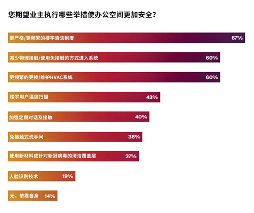 在疫情后的環境中,提升辦公體驗的需求變得更加迫切,很多企業都在尋求更協作的辦公空間、輪流辦公模式、共享辦公桌、以及增加和擴大便利設施供應等。