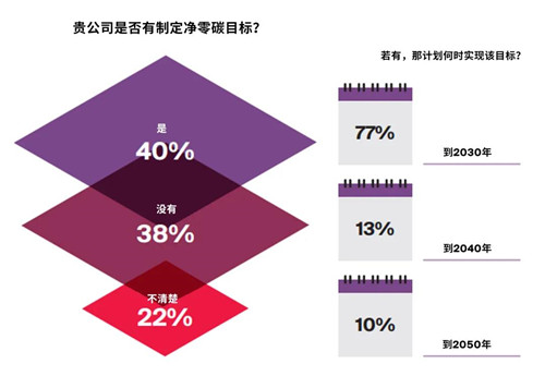 報告顯示,77%的受訪者都會設置一個公開的凈零碳目標,而且把目標日期設定在2030年之前。