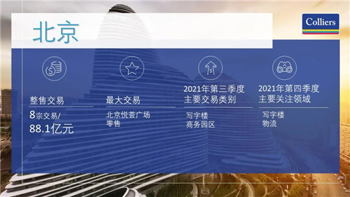 三季度完成的其他交易包括總價值4.78億元的一棟寫字樓和一個商務園區;總價值6.35億元的兩個工業項目和價值6.3億元的一個公寓項目。
