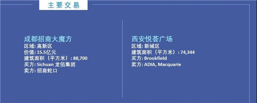 成都和西安在三季度均錄得1筆交易,為成都招商大魔方和西安悅薈廣場。