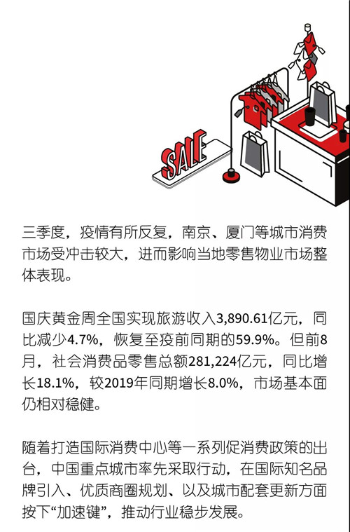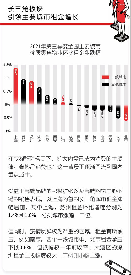 仲量聯行近日發布2021年第三季度全國房地產市場概覽,對全國房地產市場進行回顧展望。在零售地產方面,三季度Z時代引領零售變革,消費場景更多新奇零售組合;長三角板塊引領商業租金增長;新增項目不斷,零售商業將迎戰年末消費高峰。