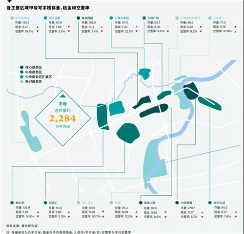 第三季度有超過半數的新竣工項目位于新興商務區。位于徐匯濱江的湘芒果大廈以及大眾濱江眾騰大廈竣工交付,分別為市場帶來56,300平方米和33,000平方米的辦公面積。位于虹橋商務區的由光大安石開發管理的光大安石虹橋中心竣工交付,為市場帶來56,200平方米的辦公面積。此外,虹口瑞虹新城地區以及普陀長風地區也有新項目在本季度竣工交付,分別是140,000平方米的瑞虹企業天地以及85,000平方米的國浩長風城。