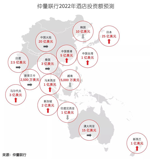 仲量聯行大中華區酒店及旅游地產事業部高級副總裁陳玲瑋指出,隨著國內商務和休閑游出行需求的大幅增長,酒店和旅游行業投資者的信心正在持續快速恢復。盡管市場仍然面臨一系列短期挑戰,但從中長期看,國內酒店與旅游行業的投資活動將保持穩健增長。預計2022年中國酒店投資市場狀況繼續向好,交易額將達20億美元(約合人民幣129億元)。