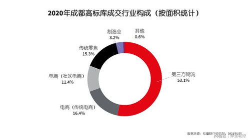 2020年社區生鮮電商迅速崛起,在互聯網巨頭的資本加持下助力倉儲物流市場涅盤重生。截至2020年末,美團、滴滴、京東、阿里等互聯網巨頭均在成都開設社區生鮮電商業務,加之老一批入局者如興盛優選、叮咚買菜、十薈團等,社區電商行業可謂百花齊放。2020年全年高標庫新增租賃面積中,社區電商企業的倉儲面積占比例高達11%,超越制造業成為成都倉儲市場第三大需求客戶。