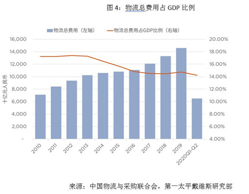 伴隨經濟陸續復蘇、貿易出口強勁增長,以及電商蓬勃發展,物流行業租賃需求逐漸升溫。先進制造業產業升級及消費市場演進為物流市場發展帶來持續動力。在土地市場,倉儲工業用地供應同樣有所增加,2020年前三季度同比增幅達到19%,較去年全年增幅上升了17個百分點。政策層面的宏觀指引,尤其在新型基礎設施建設方向上將持續利好物流行業。中國的物流總費用占GDP比重為14%,且近幾年變化幅度不大,較成熟市場仍有一定差距。隨著第五代移動通信、工業互聯網等新基礎設施的加速建設,物流倉儲市場在高效、智能、綠色、安全等層面將繼續升級。