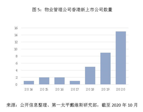 對社區、住戶及員工健康安全的保護,令物業管理服務價值愈發凸顯。與此同時,物業行業的提升和發展空間逐漸顯現。物業價格不斷上升,業主對更高品質的物業管理服務存在需求,物業管理的內容已經不再局限于簡單的維護管理,增值服務的發展空間逐步打開。2020年,物業管理公司的上市數量達到近年新高。開發商分拆物業公司上市,一方面可將觸角伸至更多項目管理,不斷擴大規模,實現資源高效利用及分配;也可促進物業管理服務自身不斷精益求精。