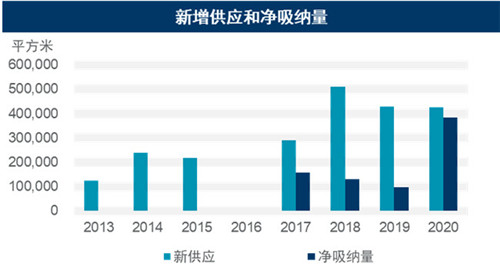 2020年,南寧迎來三個新項目共42.6萬平方米的甲級寫字樓入市,其中五象新區占比58%,仍然是全市供應主力。雖然總量與去年基本持平,但實際上受疫情影響,部分原計劃于2020年入市的項目進行了后延。年末,全市甲級寫字樓存量增加至246.7萬平方米。供應放量之下,南寧寫字樓總體品質不斷提升。