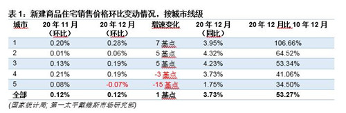12月,全國70個大中城市新建商品住宅平均售價環(huán)比上漲0.123%,較11月的0.117%有所增加。平均售價較去年同期上漲3.73%,較指數(shù)設(shè)立基期(2010年12月)累計上漲53.27%。其中,42個城市的新建商品住宅售價錄得環(huán)比上漲,6個城市環(huán)比持平,22個城市環(huán)比下跌。