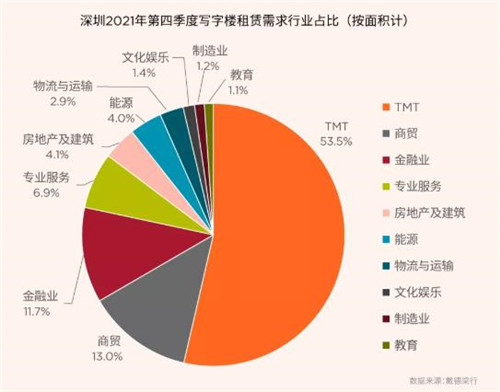 科技類企業是當前深圳辦公需求的主要支撐,金融、專業服務業等符合政府產業導向及租金補貼的行業亦為租賃需求主力,不僅包括中小型公司新布局進駐,還有龍頭公司的擴租、換租需求等。