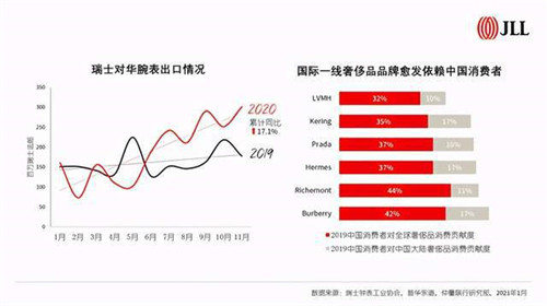 最后,中國在2020年引領全球高端、奢侈品消費,讓不少國際一線品牌將全球新品發布會放在國內舉行。中國消費市場對全球的價值在2019年已表現十分明顯,中國市場對一線品牌的貢獻率普遍不低于30-40%。2020年,疫情導致中國消費者無法跨國消費的背景下,瑞士對華腕表出口更是同比大幅增長17.1%,足見中國消費者的影響力。尤其在疫情可能“常態化”的預期下,中國消費之于全球經濟、國際品牌的價值已不言而喻。