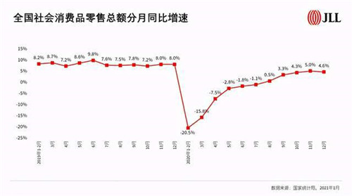 中國經濟與消費都經歷“低開高走”的2020年。雖然從基本盤視角分析,消費整體規模仍同比下降,但消費出現的結構性變化對零售物業市場的發展帶來的未來啟示更具前瞻性價值。