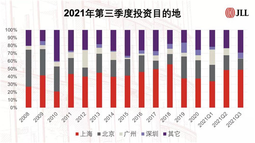 從物業(yè)類型分析,2021年第三季度辦公樓成交占總成交額的57.6%,環(huán)比上漲14.2%。一線城市強(qiáng)勁的辦公租賃需求讓投資者對(duì)于這一資產(chǎn)類別保有較強(qiáng)信心。物流資產(chǎn)繼續(xù)保持旺盛需求,占總成交額32%,環(huán)比上漲15.9%,投資價(jià)值和潛力日益明顯;而且機(jī)構(gòu)投資者偏好大型城市群的物流資產(chǎn),尤其是長(zhǎng)三角、大灣區(qū)、京津冀和成渝地區(qū)。另外,市場(chǎng)和政策的變化也讓機(jī)構(gòu)投資者更加關(guān)注另類資產(chǎn),尤其是長(zhǎng)租公寓和生物醫(yī)藥物業(yè)。