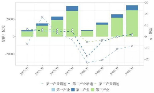 2020年北京經濟呈現穩步回升向好態勢。全市地區生產總值達到36102.6億元,增速在1~3季度由負轉正后繼續提高,全年增長1.2%,比1~3季度提高1.1個百分點。分產業看,第一產業實現增加值107.6億元,下降8.5%;第二產業實現增加值5716.4億元,增長2.1%;第三產業實現增加值30278.6億元,增長1.0%。生產、需求領域穩步恢復。
