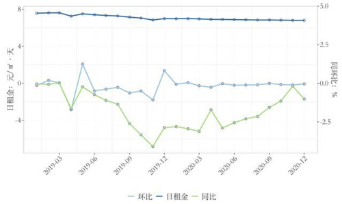 分商圈來看,截至12月份,金融街的平均租金環比微降0.11%至14.20元/㎡·天,CBD、燕莎商圈的平均租金分別環比變化-0.1%和0.26%至8.24元/㎡·天和8.61元/㎡·天,中關村區域的平均租金環比微跌0.04%至7.25元/㎡·天,麗澤金融商務區的平均租金環比微漲0.19%至6.20元/㎡·天,豐臺科技園、亦莊等非核心區域的平均租金分別環比微降0.30%和0.40%至3.64元/㎡·天和2.93元/㎡·天。