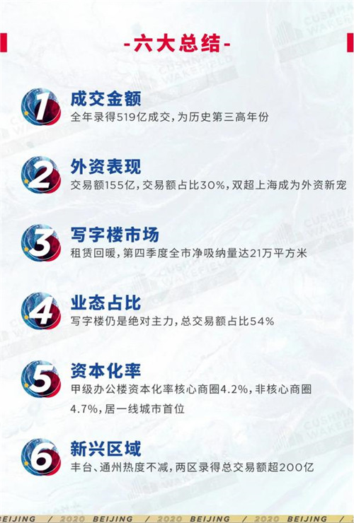[提要]2020年北京大宗交易錄得519億成交,為歷史第三高年份。寫字樓業態仍是絕對主力,總交易額占比54%。