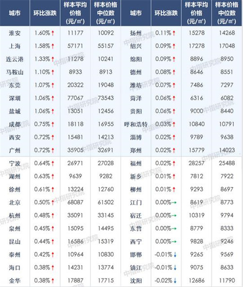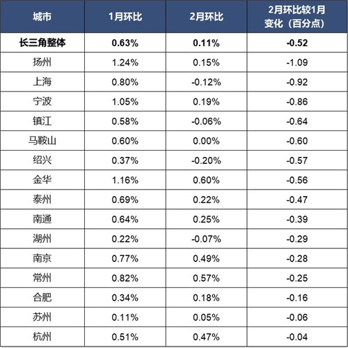 表:長三角部分城市新建住宅價格環(huán)比漲跌變化