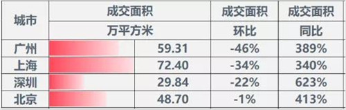 一線城市:成交有所下滑,廣州降幅明顯