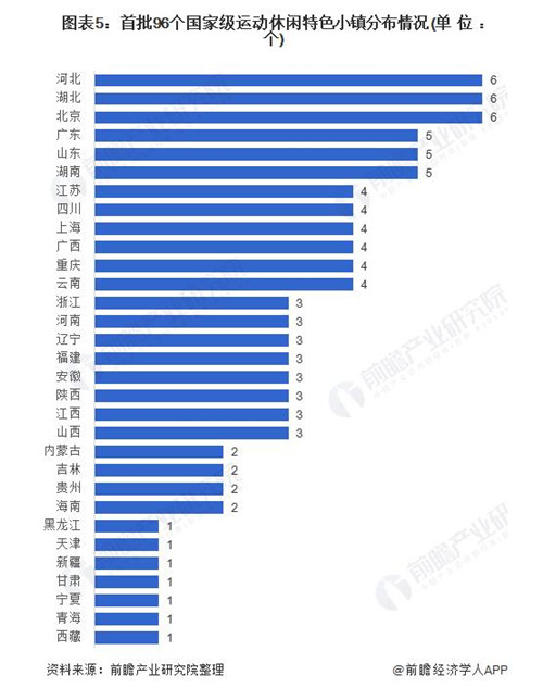 2017年8月,國家體育總局公布了首批96個國家級運動休閑特色小鎮試點名單,隨后,各個省份陸續頒布了省級體育特色小鎮試點名單。