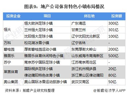 以房地產開發商為主的投資主體爭相布局體育特色小鎮,比如,恒大歐洲足球小鎮、厚街碧桂園運動小鎮、雅居樂體育休閑特色小鎮等。