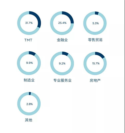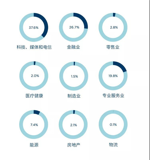 上海甲級(jí)寫字樓成交租賃面積——按產(chǎn)業(yè)(2020年)