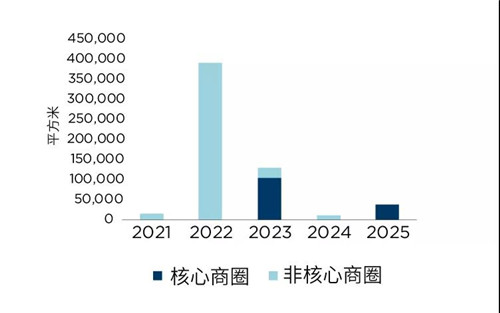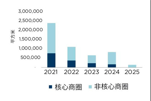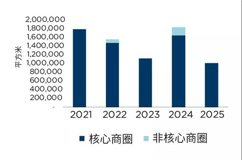 上海甲級(jí)寫字樓市場(chǎng)新增供應(yīng)動(dòng)態(tài)(根據(jù)核心/非核心商圈劃分)