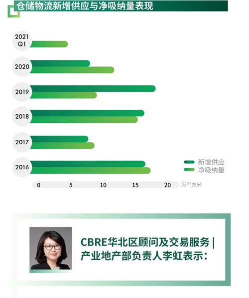 “年初發布的‘十四五’規劃提出支持具備條件的物流園區和重點企業引入鐵路專用線,支持利用工業廠房改造建設冷鏈物流基礎設施,發展智能立體倉等;而以航空科技、航空物流等產業和國家物流樞紐、智慧物流示范區為定位的大興機場臨空經濟區周邊的物流規劃也將在近期出臺,這些舉措將為大北京物流地產發展注入活力。”