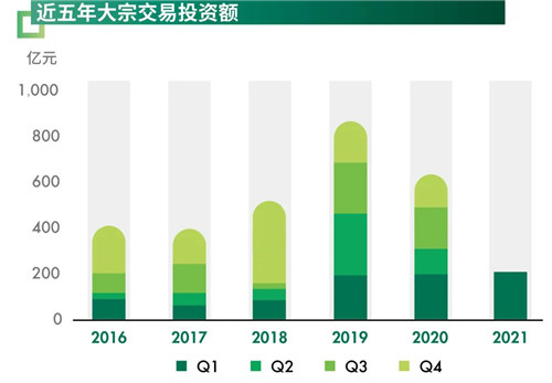 2021年第一季度,北京共達成十筆大宗交易,交易總額達209.1億元,環比和同比分別上漲40.0%和3.8%,交易活躍度進一步提升,并成為本季度全國交易額最高的市場。