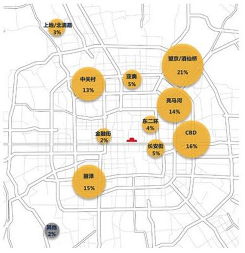 在需求來源方面,Cresa世樺嘉潤的數據顯示,科技與金融行業依然是北京寫字樓市場需求的最主要來源,二者在全市新增租賃面積中的占比合計達到75%。專業服務、制造與生物醫藥行業也均有市場矚目的大面積租賃成交達成。