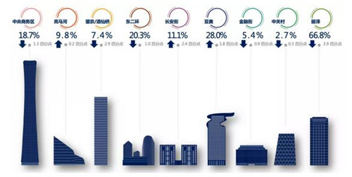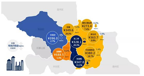 空置率方面,Cresa世樺嘉潤中國區總裁王剛先生認為,隨著國內疫情防控進入新常態,宏觀經濟企穩回暖,租戶的租賃需求在本季度進一步得到釋放。受此驅動,全市甲級寫字樓市場的空置率環比降低0.3個百分點至19.4%,這也是甲級寫字樓市場近六個季度首次錄得空置率環比回落。乙級寫字樓市場的空置率環比下降1.6個百分點至13.0%。就甲級寫字樓市場各商圈而言,越加受到租戶青睞的麗澤商圈在有新項目入市的情況下,空置率依然環比降低3.9個百分點至66.8%。諸多科技行業租戶達成的大面積成交,令望京/酒仙橋商圈的空置率較上季度降低2.9個百分點至7.4%。租金的持續下調同樣帶動了中央商務區商圈更為活躍的市場表現,其空置率也在本季度由上季度的20.0%降至18.7%。與此相對,由于一些承租面積較大的租戶退租或縮減其租賃面積,長安街與亞奧商圈的空置率分別環比上浮2.4與1.8個百分點。
