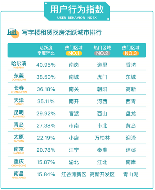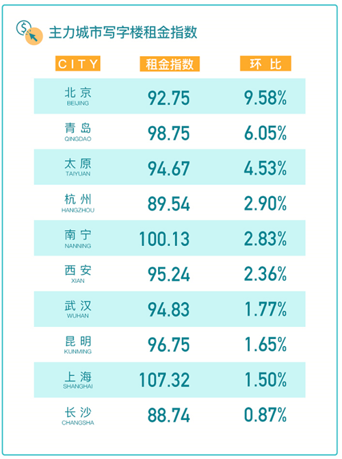 寫字樓租金指數環比漲1.19%,租賃找房活躍度指數環比上漲13.5%