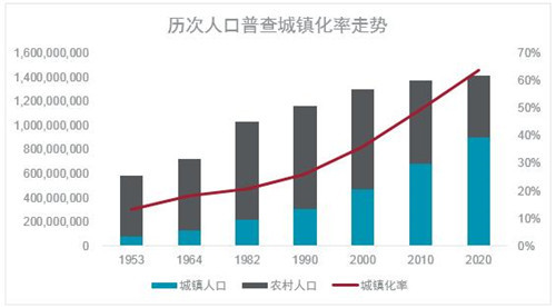 中國的城鎮化率在過去十年中從49.7%上升至63.9%,平均每年有超過2000萬的人口從農村進入到城市。農村人口向城市的遷移將會在消費、住房、城市基礎設施建設等多方面推動區域經濟的發展。城鄉統籌、城鄉一體、產業互動、和諧發展的新型城鎮化的發展將成為未來中國經濟發展的動力來源。