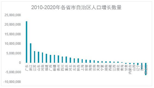 在過去十年中,中國的人口呈現逐漸向東部聚集的趨勢。從人口占比來看,東部地區人口占比較2010年上升了2.15個百分點,至39.93%。而東北區域的人口較十年前下降了1.2個百分點。
