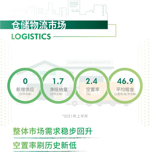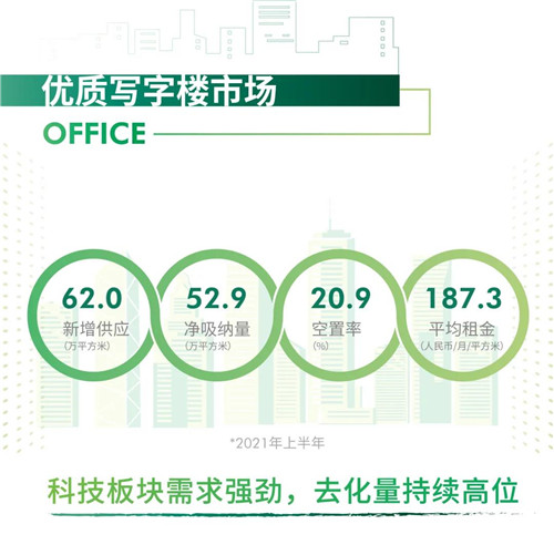 市場需求強勁,連續第二個半年錄得50萬平方米以上的吸納,并由此帶動整體市場在面臨新增供應密集交付的情況下依然實現了空置率的持續改善,環比下降1.6個百分點至20.9%。