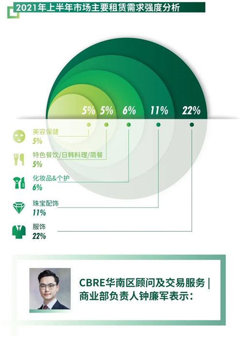 與此同時,美妝業態表現搶眼,上半年共錄得超過20家美妝品牌入市,95%以上為國際品牌,高度集中于優質購物中心,且依然有購物中心打造美妝區以提升競爭力。