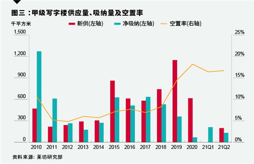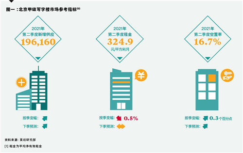 7月20日,萊坊發布2021年二季度北京甲級寫字樓市場報告指出,第二季度,北京甲級寫字樓市場平均租金環比下降0.5%至每月每平方米人民幣324.9元,租金降幅進一步收窄。全市新增甲級寫字樓面積196,160平方米,推升全市平均空置率環比上升0.3個百分點至16.7%。在新增供應的加持下市場凈吸納量仍達到近13萬平方米。大宗交易市場上,外資持續加碼北京商辦房地產市場,寫字樓市場大宗交易表現活躍。