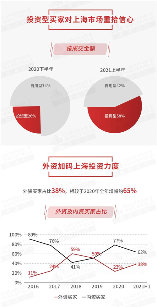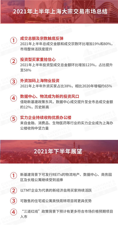 [提要]據戴德梁行市場報告,上半年上海大宗交易市場觸底反彈,投資活躍度整體提升,投資型買家對上海市場重拾信心,外資加碼上海投資力度,數據中心和物流成為新的投資風口,實力企業迎來收購辦公樓的絕佳時機。