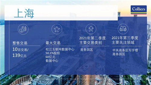 上海二季度完成10筆交易,總交易額為139億元。自用客戶仍是寫字樓和商務園區板塊最活躍的買家,而投資交易包括公寓、數據中心、物流和酒店項目。