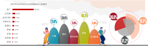 優質新項目的陸續開業也推動武漢零售市場進入新一輪的首店經濟活躍期,其中武廣商圈、江漢路商圈、武漢CBD片區分別位列前三甲。分業態來看,上半年入駐首店主要集中在零售、餐飲和兒童類業態。從首店類型來看,上半年入駐的首店以武漢首店為主,其次是華中首店占比,全國首店占比12.2%。