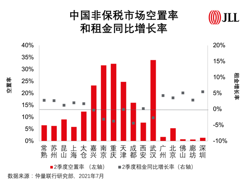 從具體區(qū)域角度來看,京津冀地區(qū)受北京和天津新增需求相對小于新增供應(yīng)的影響,空置率小幅上升,而大灣區(qū)的空置率則受廣州二季度新簽的租賃成交而進一步下降。與上季度相比,長三角和成渝地區(qū)雖出現(xiàn)大量新增供應(yīng),但強勁的租賃需求使空置率出現(xiàn)小幅降低。在中西部地區(qū),西安市場因租賃需求旺盛,空置率進一步下降;而武漢市場的空置率則由于大量新增供應(yīng)和有限的需求而持續(xù)走高。