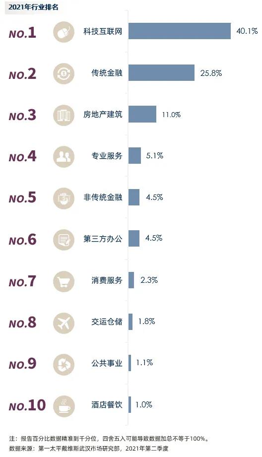 科技互聯網行業占據武漢甲級寫字樓大型租戶需求首位