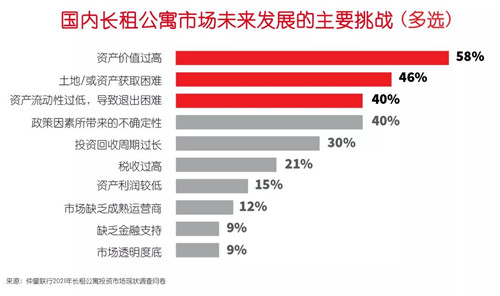 此外,“資產(chǎn)流動性過低,導致退出困難”成為第三大挑戰(zhàn),退出機制已是投資者最關(guān)注的話題之一。短期內(nèi),單一資產(chǎn)或資產(chǎn)包退出仍將是主要的途徑;但中期有望通過REITs提升長租公寓投資市場的流動性。