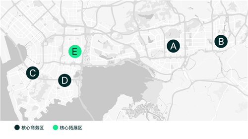 TMT和金融穩(wěn)居深圳主要商務(wù)片區(qū)需求榜的前兩席,其中TMT板塊需求增長迅猛,替代5年前部分片區(qū)位居第二位的專業(yè)服務(wù)及房地產(chǎn)建筑板塊的需求。TMT在各大商務(wù)片區(qū)中的需求比例均有顯著提升,且呈現(xiàn)出對(duì)于南山區(qū)明顯的市場(chǎng)偏好,主要原因在于高新園區(qū)、后海片區(qū)作為頭部科技總部所在地,吸引了眾多上下游企業(yè),從而形成了較為完整的科技生態(tài)圈,不斷帶動(dòng)科技企業(yè)的聚集。而金融行業(yè)需求則橫跨多個(gè)商務(wù)片區(qū),福田和南山區(qū)均納入選址考慮范圍,從前海、后海和高新園區(qū)來看,金融業(yè)板塊均為第二大需求來源。此外,專業(yè)服務(wù)業(yè)和房地產(chǎn)建筑作為第三位需求來源,則因片區(qū)分布而有差異。專業(yè)服務(wù)業(yè)需求主要分布在原本占比較高的福田CBD和蔡屋圍兩大片區(qū),以及相應(yīng)產(chǎn)業(yè)政策引導(dǎo)下的前海片區(qū),其中福田CBD更是聚集了全市近一半的專業(yè)服務(wù)業(yè)需求,三大商務(wù)片區(qū)中均監(jiān)測(cè)到3個(gè)百分點(diǎn)以上的需求提升。而房地產(chǎn)建筑需求則主要分布在近年來房地產(chǎn)項(xiàng)目新增供應(yīng)較多的高新園和后海片區(qū),近項(xiàng)目擇址偏好明顯。但受房地產(chǎn)行業(yè)政策調(diào)控的影響,在兩大商務(wù)片區(qū)的需求比例對(duì)比5年前均有約10個(gè)百分點(diǎn)的減少。