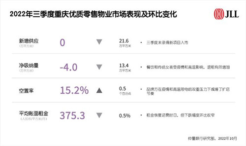 2022年三季度重慶優質零售物業市場表現及環比變化