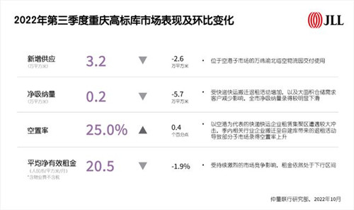 2022年第三季度重慶高標庫市場表現及環比變化