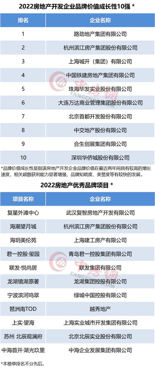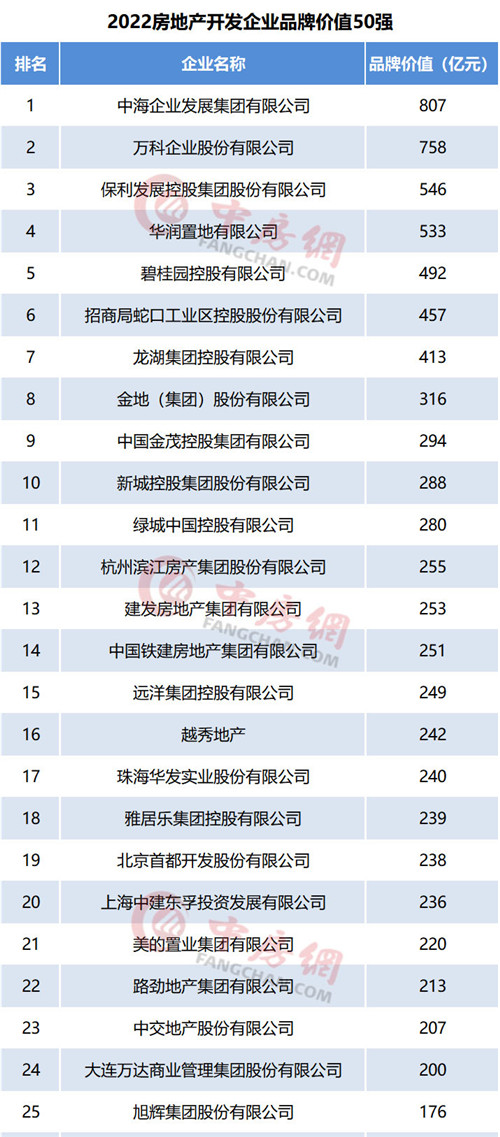 附:2022房地產(chǎn)開發(fā)企業(yè)品牌價值測評榜單