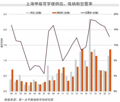 第一太平戴維斯近日發布2021年四季度上海房地產市場回顧及展望指出,2021年上海商業辦公、零售年供應超百萬平方米,大宗成交近千億元,上海市場以多個里程碑數字圓滿收官2021。