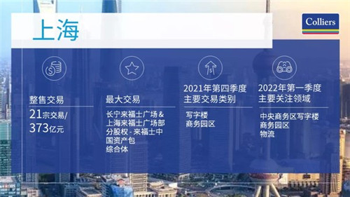 四季度上海共錄得21筆交易,總交易額373億元,總成交面積約79萬方。