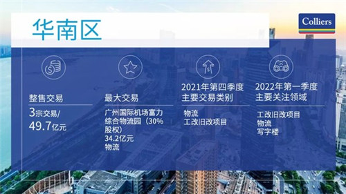 在廣州,寫字樓、商務園區和物流資產將受到投資者的青睞。深圳方面,投資者料將繼續尋找工改舊改城市更新方面的機會,這一領域也會帶來自用交易機會。
