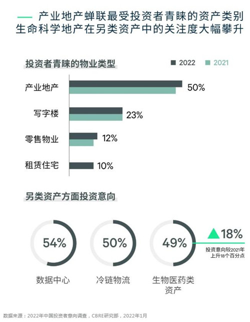 另類資產方面,數據中心持續獲得投資者關注,并在2022年的調查中連續第三年成為最受關注的另類資產。投資者對冷鏈物流和生命科學地產的關注度快速攀升,投資意向分別大幅上升12個和18個百分點。